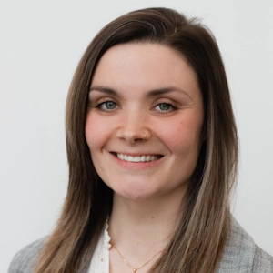 Outside of work, Sarah finds her balance through yoga or exploring the outdoors with her dog.